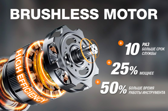 Способствует повышенной производительности и увеличенному ресурсу, а также на 30% сокращает расход энергии аккумулятора. Инструмент становится более экономичным и эффективным в использовании